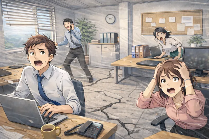 突然、大きくて長い揺れが襲い、収まったかと思ったところにもう一度。